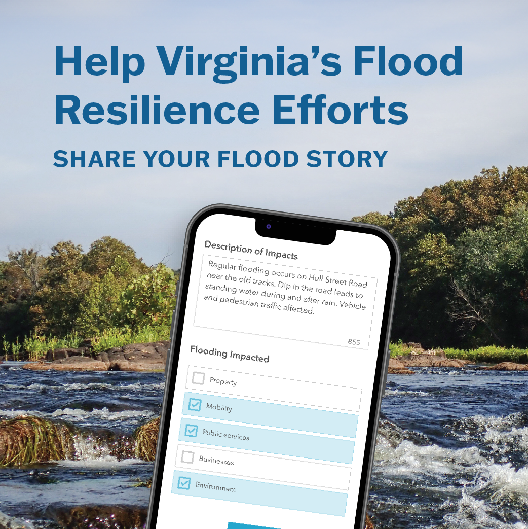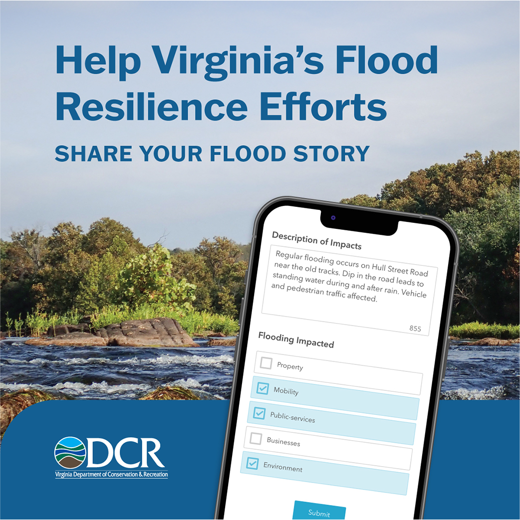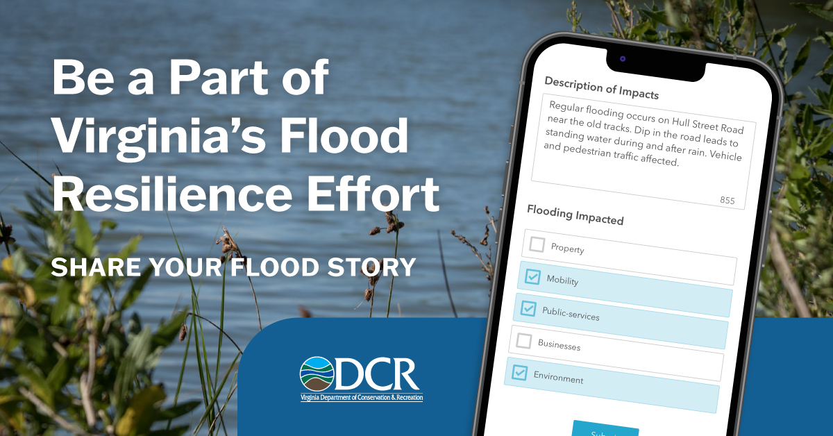 Câu chuyện của bạn giúp DCR xây dựng các chiến lược phòng chống lũ lụt hiệu quả và cung cấp thông tin cho Kế hoạch tổng thể về khả năng phục hồi bờ biển Virginia và Kế hoạch tổng thể về phòng chống lũ lụt Virginia do DCR xây dựng.