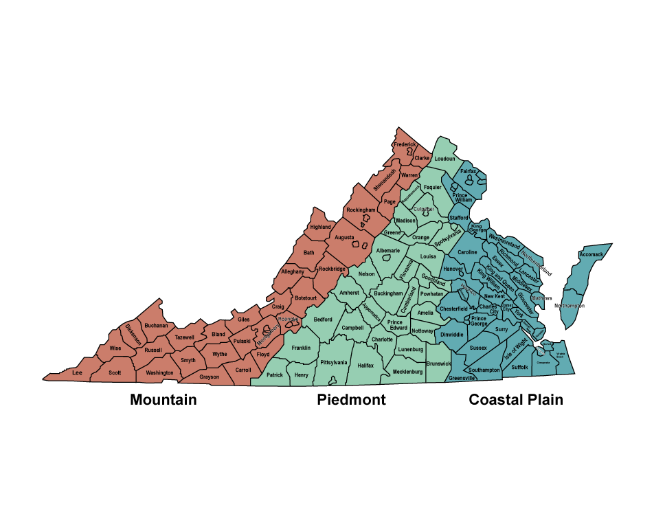 Để có danh sách tùy chỉnh các loài thực vật xâm lấn, hãy sử dụng biểu mẫu thứ hai. Tất cả các trường trong biểu mẫu thứ hai đều là tùy chọn, nhưng hãy chọn ít nhất một vùng. Nhấp vào đây hoặc trên bản đồ để tìm khu vực của bạn. Miền núi, vùng Piedmont và đồng bằng ven biển là những khu vực được phân định cho công cụ tìm kiếm này. Các vùng thường có đất đai, độ cao, thủy văn và khí hậu khác nhau nên thực vật ở mỗi vùng cũng khác nhau. Hãy lưu ý rằng các quận dọc theo ranh giới có thể nằm trong hai vùng. Để biết thông tin cụ thể về các khu vực, hãy truy cập phần tổng quan của Cộng đồng thiên nhiên Virginia. Chọn điều kiện ánh sáng dựa trên lượng ánh sáng mặt trời chung mà địa điểm bạn quan tâm nhận được. Các lựa chọn về điều kiện độ ẩm đất là xeric (khô), mesic (trung bình) và hydric (đất ướt hoặc đất ngập nước).