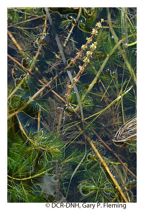 Thảm thực vật thân thảo thủy sinh của nhóm sinh thái này chỉ giới hạn ở các nhánh sông nhỏ, các nhánh sông nông và các vũng nước đầm lầy lớn dọc theo các đoạn sông thủy triều có độ mặn thấp và nước ngọt. Độ sâu trung bình của nước ở những môi trường sống này quá lớn đối với các loài sinh vật thủy sinh mới nổi. Các cộng đồng của nhóm này được biết đến từ Maryland về phía nam tới Nam Carolina. Ở Virginia, chúng được ghi nhận rõ nhất ở vùng cực đông nam của tiểu bang, dọc theo sông Northwest và North Landing có gió thủy triều và các nhánh của Back Bay. Những môi trường sống và thảm thực vật tương tự dường như cũng xuất hiện ở vùng nước ngọt, vùng nước triều của thượng nguồn sông Pamunkey và Mattaponi (nhánh của sông York) và sông Chickahominy (nhánh của sông James). Môi trường sống có thể chịu sự dao động mực nước > 1 m (3 ft) và chịu sự tiếp xúc thường xuyên hoặc không thường xuyên khi thủy triều xuống cực thấp. Thảm thực vật bao gồm toàn bộ các loài thủy sinh nổi và chìm. Rêu sừng (Ceratophyllum demersum) là loài quan trọng và phong phú nhất. Bladderworts (Utricularia spp.), cỏ nước phương Tây (Elodea nuttallii), bèo tấm lớn hơn (Spirodela polyrrhiza), cỏ băng (Vallisneria Americaana) và cỏ kiếm (Wolffiella Gladiata) là cộng sự của chúng. Các môi trường sống ở phía đông nam Virginia có độ sâu nước < 60 cm (24 in) có lớp phủ bề mặt thưa thớt đến dày đặc của hoa súng trắng (Nymphaea odorata ssp. odorata) hoặc, tại một địa điểm, hoa sen Mỹ (Nelumbo lutea). Trên sông Chickahominy, cây rau sam lá hẹp (Nuphar sagittifolia) tạo thành những thảm lớn nổi trên mặt nước.