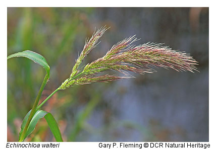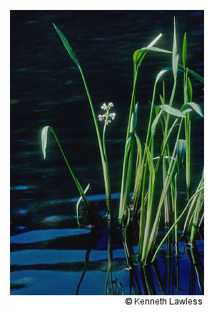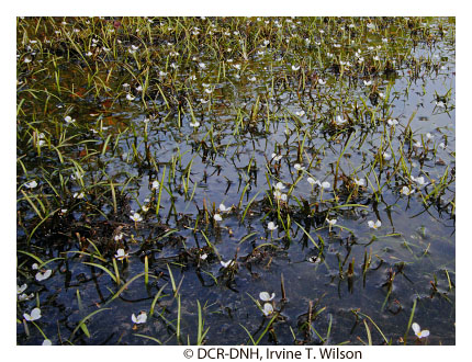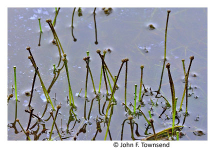 Vegetation of high-energy tidal shores varies from sparse to dense, but tends to be low-statured (< 1 m tall, often much less). Unlike most marshes, these communities occur in linear patches, chiefly < 10 m wide, and most occur under both freshwater and oligohaline regimes. Composition appears to vary with substrate and other environmental dynamics. Species of bulrush, particularly common threesquare (Schoenoplectus pungens var. pungens) and soft-stem bulrush (Schoenoplectus tabernaemontani), are characteristic of most sites. Common threesquare dominates gravelly shores of the tidal Potomac River in northern Virginia, where ice scouring is most frequent. Vegetation of sandy habitats subject to greater periodic turbulence tends to be sparse and contain low annuals and perennials such as shore quillwort (Isoetes riparia), Parker's pipewort (Eriocaulon parkeri), dotted smartweed (Persicaria punctata), dwarf arrowhead (Sagittaria subulata), grass-leaved arrowhead (Sagittaria graminea), American waterwort (Elatine americana), flatsedges (Cyperus spp.), common water-purslane (Ludwigia palustris), and golden club (Orontium aquaticum). Common water-willow (Justicia americana) often forms dominance patches on clayey mudflats and bars. Vegetation of mucky channel edges is usually taller and contains common threesquare, soft-stem bulrush, and square-stem spikerush (Eleocharis quadrangulata), along with pickerelweed (Pontederia cordata var. cordata), arrow-arum (Peltandra virginica), wild rice (Zizania aquatica var. aquatica), tidal-marsh amaranth (Amaranthus cannabinus), swamp barnyard grass (Echinochloa walteri), and other more typical marsh species.