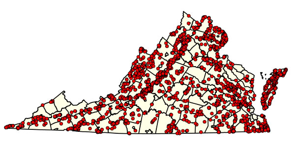 Ban đầu, một tỷ lệ đáng kể các dữ liệu lô đất này được thu thập như một phần của các nghiên cứu cấp cảnh quan cho một số khu vực riêng biệt của Rừng quốc gia George Washington và Jefferson (Fleming và Moorhead 1996, Rawinski và cộng sự 1996, Coulling và Rawinski 1999, Fleming và Moorhead 2000); phức hợp Grafton Ponds ở Quận York (Rawinski 1997); ba lưu vực liền kề ở đông nam Virginia (Fleming và Moorhead 1998); Khu bảo tồn quân sự Fort Belvoir (McCoy và Fleming 2000); Lưu vực sông Pamunkey ở Đồng bằng ven biển phía bắc (Walton và cộng sự 2000); Dãy núi Bull Run (Fleming 2002b); Công viên chiến trường quốc gia Manassas (Fleming và Weber 2003); Công viên quốc gia Shenandoah (một số dự án); và Hẻm núi Potomac (Fleming 2007).