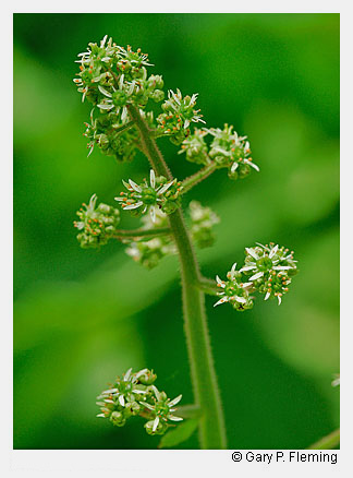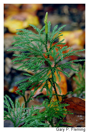 Seepage swamps above 975 m (3,200 ft) elevation are compositionally allied with more northern vegetation types. Eastern hemlock (Tsuga canadensis), yellow birch (Betula alleghaniensis), and red maple (Acer rubrum) are the most common trees. Locally, red spruce (Picea rubens) or eastern white pine (Pinus strobus) may be co-dominants. Shrub layer composition and density is variable; deciduous hollies (Ilex verticillata and Ilex montana), several blueberries (particularly Vaccinium corymbosum, Vaccinium simulatum, and Vaccinium angustifolium), great rhododendron (Rhododendron maximum), mountain laurel (Kalmia latifolia), speckled alder (Alnus rugosa), and witch hazel (Hamamelis virginiana var. virginiana) may be abundant. Characteristic herbs of these swamps include marsh marigold (Caltha palustris var. palustris), star sedge (Carex echinata ssp. echinata), finely-nerved sedge (Carex leptonervia), eastern rough sedge (Carex scabrata), three-seeded sedge (Carex trisperma), slender wood reedgrass (Cinna latifolia), tall flat-topped white aster (Doellingeria umbellata var. umbellata), spinulose wood fern (Dryopteris carthusiana), slender mannagrass (Glyceria melicaria), whorled wood aster (Oclemena acuminata), cinnamon fern (Osmundastrum cinnamomeum), American false-hellebore (Veratrum viride), and smooth white violet (Viola mackloskeyi var. pallens). Communities in this group are naturally rare due to the scarcity of flat or gentle, wet habitats in the higher Appalachians.