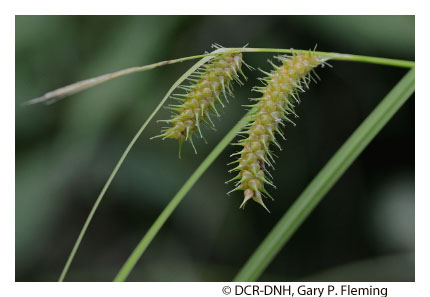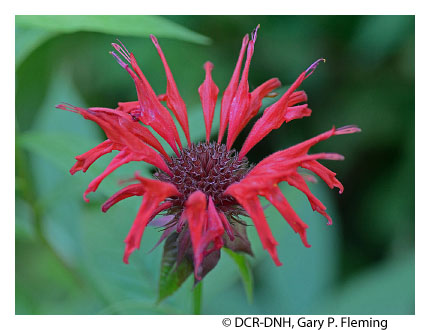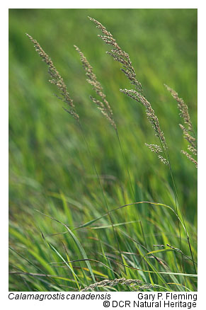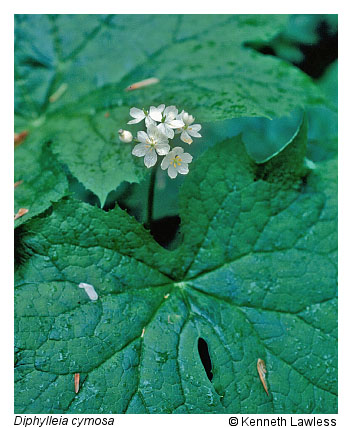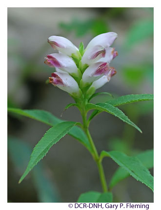 Montane Woodland Seeps are saturated herbaceous wetlands occurring on relatively steep, often gravelly or bouldery slopes at sites of groundwater discharge. These communities are scattered in the western Virginia mountains and Piedmont foothills, but are most abundant above 760 m (2500 ft) elevation. The habitats are typically narrow, rocky, and partially shaded by tree species rooted in adjacent upland forests. A few occurrences encompass large spring seeps on high-elevation cliffs. Vegetation is similar to the herbaceous component of seepage swamps, but is usually more forb-rich. Common species include scarlet beebalm (Monarda didyma), southeastern cutleaf coneflower (Rudbeckia laciniata var. digitata), orange jewelweed (Impatiens capensis), rough-leaved goldenrod (Solidago patula), rough-stemmed goldenrod (Solidago rugosa var. rugosa), white turtlehead (Chelone glabra), golden saxifrage (Chrysosplenium americanum), golden ragwort (Packera aurea), American false-hellebore (Veratrum viride), marsh blue violet (Viola cucullata), marsh marigold (Caltha palustris var. palustris), eastern rough sedge (Carex scabrata), and, in the southern Blue Ridge, umbrella-leaf (Diphylleia cymosa). Graminoids, including bluejoint (Calamagrostis canadensis), shortbeak sedge (Carex baileyi), and nodding sedge (Carex gynandra), may be prominent locally.