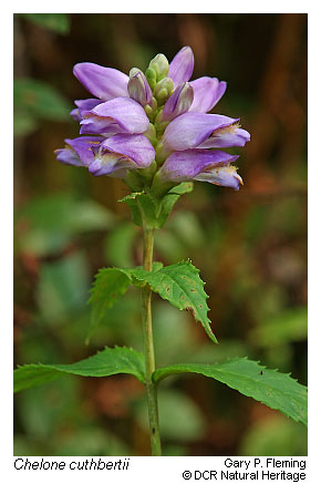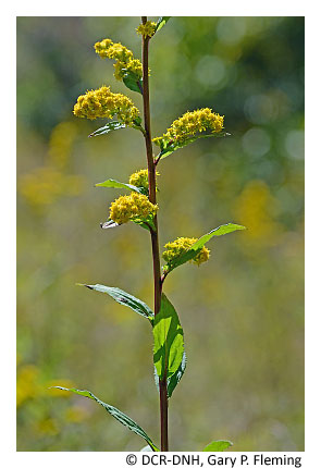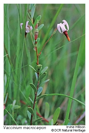Bog vegetation is frequently a mosaic of tree or shrub patches and herbaceous openings. Several compositional variants associated with geography and elevation have been documented in Virginia. Species common to most variants include great rhododendron (Rhododendron maximum), Catawba rhododendron (Rhododendron catawbiense), silky willow (Salix sericea), smooth alder (Alnus serrulata), cinnamon fern (Osmundastrum cinnamomeum), tawny cottongrass (Eriophorum virginicum), prickly bog sedge (Carex atlantica), Fraser's marsh St. Johns-wort (Triadenum fraseri) , and brownish beaksedge (Rhynchospora capitellata). Species more restricted to low-elevation (below 900 m [3000 ft]) bogs of the Ridge and Valley and Cumberland Mountains include pitch pine (Pinus rigida), round-leaved sundew (Drosera rotundifolia ), bushy bluestem (Andropogon glomeratus), tussock sedge (Carex stricta), tuberous grass-pink (Calopogon tuberosus var. tuberosus), yellow fringed orchid (Platanthera ciliaris), and Nuttall's reed-grass (Calamagrostis coarctata). Species more restricted to higher-elevation (mostly above 900 m [3000 ft]) bogs of the southern Blue Ridge, Allegheny Mountains, and/or the highest mountains of the Ridge and Valley include stunted red spruce (Picea rubens), long-stalked holly (Ilex collina), northern wild raisin (Viburnum cassinoides), Carolina laurel (Kalmia carolina), cranberry (Vaccinium macrocarpon), rough-leaved goldenrod (Solidago patula), Cuthbert's turtlehead (Chelone cuthbertii), bog goldenrod (Solidago uliginosa var. uliginosa), star sedge (Carex echinata ssp. echinata), narrow-leaf bur-reed (Sparganium acaule), bog willow-herb (Epilobium leptophyllum), narrow-panicled rush (Juncus brevicaudatus), three-seeded sedge (Carex trisperma), Ruth's sedge (Carex ruthii), and thyme-leaf bluets (Houstonia serpyllifolia).