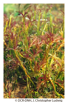 Nhóm thực vật thân thảo nổi và chìm này sinh sống ở các dòng suối có độ sâu không cho phép các loài nổi lên nhưng cho phép các loài thủy sinh bám rễ ở đáy. Những cộng đồng này xuất hiện ở khắp miền Đông Hoa Kỳ. Chúng không được thống kê đầy đủ ở Virginia, nhưng được biết là xuất hiện ở vùng nước nông nhiều đá và bùn dọc theo nhiều ngọn núi lớn và sông Piedmont. Chúng đặc biệt phát triển tốt ở vùng nước giàu bazơ của sông Shenandoah (bao gồm cả hai nhánh sông), sông James và một phần của sông Roanoke. Các loài đặc trưng bao gồm cỏ sao nước (Heteranthera dubia), cỏ băng (Vallisneria americana), rong ao (Potamogeton spp.), rong nước (Elodea canadensis và Elodea nuttallii), và rong đuôi chồn (Najas spp.). Rong sông lá sừng (Podostemum ceratophyllum) thường mọc nhiều trên các tảng đá và mỏm đá ngập nước nông. Các xoáy nước và vũng nước ven bờ chậm chạp thường hỗ trợ các thảm bèo tấm (Lemna spp.), bèo tấm (Spirodela spp.) và dương xỉ muỗi phương Đông (Azolla caroliniana) nổi. Ô nhiễm nước là mối đe dọa nghiêm trọng có thể gây ra sự suy giảm đáng kể hoặc chết hàng loạt thảm thực vật thủy sinh trong nhóm này.