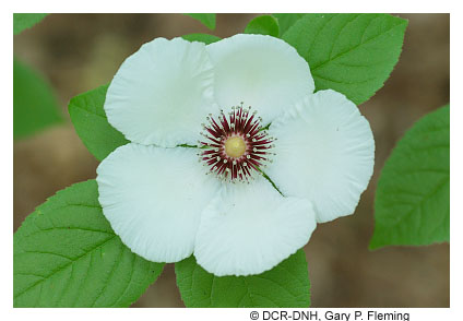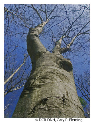 These mixed hardwood forests are widespread in mesic to submesic, infertile habitats throughout the Coastal Plain and Piedmont. Forests in this group occupy mesic uplands, ravines, lower slopes, and well-drained "flatwoods" on deep, acidic, relatively nutrient-poor soils. The most typical overstories contain mixtures of American beech (Fagus grandifolia), oaks (Quercus spp., varying by region), tulip-tree (Liriodendron tulipifera), and hickories (Carya spp.), but a wide variety of hardwood associates occur. American hornbeam (Carpinus caroliniana ssp. caroliniana and ssp. virginiana), flowering dogwood (Cornus florida), American strawberry-bush (Euonymus americanus) and American holly (Ilex opaca var. opaca) are prominent understory plants. In mesic "flatwoods" or "swamp islands" of the southeastern Virginia Coastal Plain, silky camellia (Stewartia malacodendron) and big-leaf snowbell (Styrax grandifolius) are characteristic small trees. These communities lack the lush herbaceous layers of Basic Mesic Forests, although species such as Christmas fern (Polystichum acrostichoides), New York fern (Parathelypteris noveboracensis), and white wood aster (Eurybia divaricata) may form moderately dense populations. Along with Christmas fern, downy rattlesnake-plantain (Goodyera pubescens), Virginia heartleaf (Hexastylis virginica), and partridge-berry (Mitchella repens) are frequent evergreen herbs in mesic mixed hardwood forests. The name "Southern Mixed Hardwood Forest" has been applied to some Coastal Plain representatives of this group. Although mesic mixed hardwood forests still cover sizeable areas east of the mountains in Virginia, their extent and compositional integrity have been reduced by agriculture, development, and repeated logging.