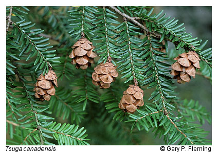 Eastern Hemlock - Rừng gỗ cứng Các khu rừng thuộc nhóm này được đặc trưng bởi sự thống trị hoặc đồng thống trị của cây độc cần phương Đông (Tsuga canadensis) ở hầu hết mọi tầng thẳng đứng. Những khu rừng tương tự được biết đến ở vùng Ngũ Đại Hồ và đông bắc Hoa Kỳ và trải dài về phía nam tới tận dãy núi Blue Ridge phía nam của Bắc Carolina và Tennessee. Ở Virginia, chúng phân bố ở những môi trường sống ẩm ướt, được che chở ở nửa phía bắc của dãy núi, cũng như các vách đá và khe núi biệt lập hướng về phía bắc trên khắp vùng Piedmont. Những quần thể hiếm, ven bờ cũng được tìm thấy trên các vách đá ở vùng đồng bằng ven biển xa nhất tại các quận Fairfax, Prince William và Hanover. Một số loài cây liên quan, đặc biệt là bạch dương ngọt và vàng (Betula lenta var. lenta và Betula alleghaniensis), sồi đỏ và sồi hạt dẻ phía bắc (Quercus rubra) và (Quercus montana), và thông trắng phía đông (Pinus strobus), thường góp phần tạo nên các tầng trên hỗn hợp, nhưng tổng diện tích che phủ của cây độc cần tầng trên và tầng dưới trong những khu rừng này thường vượt quá bất kỳ loài nào khác. Ở Piedmont, nơi rừng cây độc cần có thể xen kẽ với rừng gỗ cứng hỗn hợp Mesic, cây sồi Mỹ (Fagus grandifolia) và cây sồi trắng (Quercus alba) thường xuyên xuất hiện. Tầng dưới có độ dày từ thưa đến trung bình; một số quần thể có lớp cây bụi họ thạch nam chiếm ưu thế bởi nguyệt quế núi (Kalmia latifolia) hoặc đỗ quyên Catawba (Rhododendron catawbiense). Các loại thảo mộc thường rất thưa thớt, nhưng các quần thể hiếm trên nền cơ bản hoặc nền đá vôi có tầng dưới đa dạng hơn.