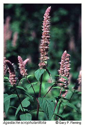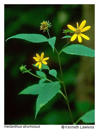 Montane oak-hickory forests reach maximal importance on base-rich igneous, metamorphic, and subcalcareous sedimentary rocks. Two types occur throughout western Virginia: a submesic to mesic, rich type with a notably lush herb layer, and a drier, more acidic type with a diverse, often graminoid-dominated herb layer. Northern red oak, white oak, red hickory (Carya ovalis), and shagbark hickory (Carya ovata) are typical co-dominant trees, although in most stands oaks attain greater importance in the overstory than do hickories (Carya spp.), which often reach maximal density and cover in the understory. The chestnut oak is important only in the drier type, while mesophytic trees such as basswood (Tilia americana var. americana and var. heterophylla), bitternut hickory (Carya cordiformis), and sugar maple (Acer saccharum) are frequent associates in the rich type. The shrub layer of these communities is often sparse, and herbaceous composition varies with geography and site conditions. A widespread compositional variant on moist sites features extensive, nearly monospecific colonies of interrupted fern (Osmunda claytoniana). Fertile sites often support a diverse herbaceous flora, including such nutrient-demanding forbs as purple giant hyssop (Agastache scrophulariifolia), white bergamot (Monarda clinopodia), cutleaf coneflower (Rudbeckia laciniata var. laciniata), pale-leaved sunflower (Helianthus strumosus), richweed (Collinsonia canadensis), yellow jewelweed (Impatiens pallida), common black cohosh (Actaea racemosa), starry campion (Silene stellata), stout goldenrod (Solidago squarrosa), hairy-jointed meadow parsnip (Thaspium barbinode), and Appalachian meadow-rue (Thalictrum coriaceum). The luxuriance of such herb layers rivals that of the Rich Cove and Slope Forests. The drier type of montane oak-hickory forest features patch-dominance by Pennsylvania sedge (Carex pensylvanica), Porter's reedgrass (Calamagrostis porteri), wavy hairgrass (Avenella flexuosa), and xerophytic forbs.