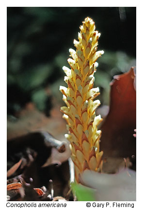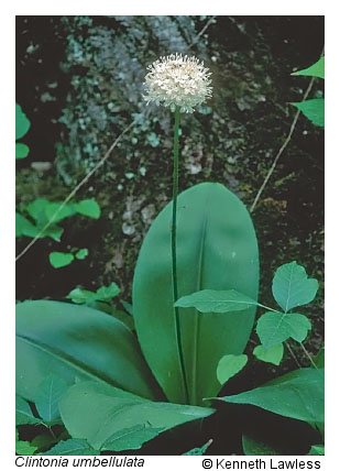 Montane mixed oak forests cover extensive areas in western Virginia and generally occupy intermediate positions along major environmental gradients such as soil moisture, soil fertility, and elevation. Soils occupied by montane mixed oak forests are typically less fertile than those of the true montane oak-hickory forests. Overstory composition contains mixtures of chestnut oak (Quercus montana), northern red oak (Quercus rubra), and white oak (Quercus alba). Overstory associates vary with geography and site conditions, but often include sweet birch (Betula lenta var. lenta), magnolias (Magnolia acuminata and Magnolia fraseri), sourwood (Oxydendrum arboreum), hickories (Carya spp.), red maple (Acer rubrum), tulip-tree (Liriodendron tulipifera), and white pine (Pinus strobus). The understories of mixed oak communities usually contain a substantial component of heaths, but also contain many non-ericaceous species such as witch hazel (Hamamelis virginiana var. virginiana), striped maple (Acer pensylvanicum), maple-leaved viburnum (Viburnum acerifolium), mountain holly (Ilex montana), buffalo-nut (Pyrularia pubera), and hazelnuts (Corylus cornuta var. cornuta and Corylus americana). The herbaceous component is relatively diverse, but often patchy and composed of both acidophiles and species characteristic of moderately fertile soils, including New York fern (Parathelypteris noveboracensis), galax (Galax urceolata), Curtis' goldenrod (Solidago curtisii), white wood aster (Eurybia divaricata), indian cucumber-root (Medeola virginiana), squawroot (Conopholis americana), halberd-leaved yellow violet (Viola hastata), speckled wood lily (Clintonia umbellulata), devil's-bit (Chamaelirium luteum), mountain golden-alexanders (Zizia trifoliata), and American lily-of-the-valley (Convallaria pseudomajalis).