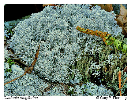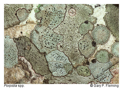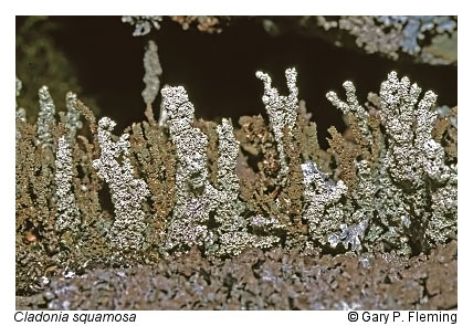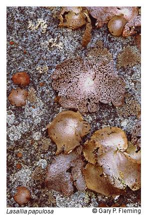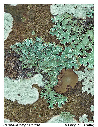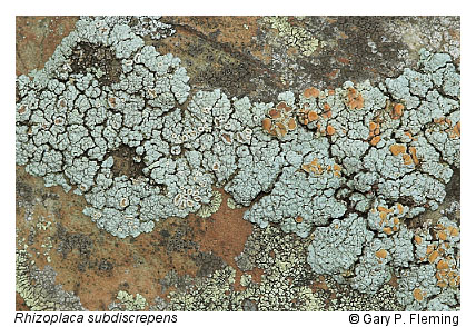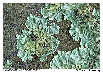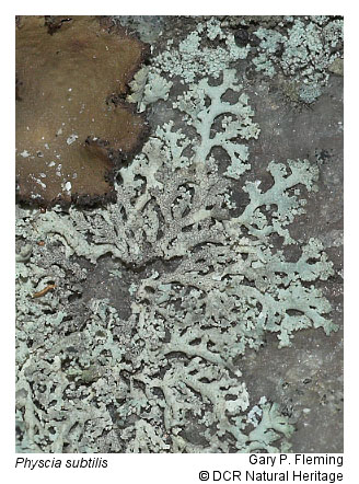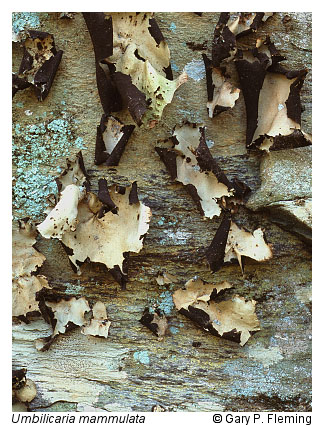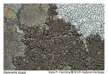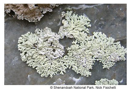 Các vùng đất đá sa thạch và thạch anh hiếm có ở độ cao trên 1,200 m (4,000 ft) tại Ridge và Valley và dãy núi Allegheny của Virginia và Tây Virginia hỗ trợ một nhóm địa y khác được đặc trưng bởi sự thống trị của Umbilicaria muehlenbergii và sự hiện diện của các loài địa y vùng núi cao như Melanelia stygia và Arctoparmelia centrifuga. Các mỏm đá biến chất cơ bản được giới hạn ở độ cao lớn hơn của dãy núi Blue Ridge phía bắc Virginia, nơi có các lớp đá metabasalt (đá xanh) bền chắc nhất. Các loài đặc trưng ở đây bao gồm Stereocaulon glaucescens , Lasallia papulosa , Chrysothrix chlorina , Usnea halei , Aspicilia cinerea, Diploschistes scruposus , Porpidia spp. , Rizoplaca subdiscrepens và nhiều lớp vỏ khác. Một số loài sống ở vùng núi cao phương bắc hoặc bị cô lập về mặt địa lý có mặt trong cộng đồng này, bao gồm Cladonia coccifera , Melanelia stygia , Microcalicium arenarium, Parmelia omphaloides , Porpidia tuberculosa , Rhizocarpon geographicum và Umbilicaria caroliniana .