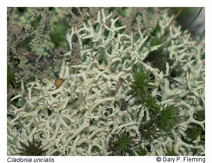 Đá vôi cũng chiếm ưu thế trong các bãi đá thạch anh khô và đá sa thạch, đặc biệt là Lasallia papulosa và Lasallia pensylvanica có nhiều. Cũng phổ biến là địa y ánh trăng vàng (Dimelaena oreina), Hypogymnia physodes, Physcia subtilis, Xanthoparmelia conspersa, Xanthoparmelia plittii và Melanelia culbersonii cùng với nhiều loài vỏ giáp xác. Các bề mặt phẳng và khe hở có lớp trầm tích mỏng của vật chất hữu cơ thường là nơi sinh sống của rêu chổi (Dicranum spp.), rêu đá Hedwig (Hedwigia ciliata ) và các loài rêu khác. Ngược lại, chúng cung cấp chất nền cho nhiều loại địa y fruticose, bao gồm Cladonia rangiferina, Cladonia uncialis, Cladonia Crisata, Cladonia furcata, Cladonia macilenta, Cladonia ochrochlora và Cladonia squamosa . Dọc theo rìa của các bãi đá cuội, các cá thể rải rác của cây thường xuân Virginia (Parcenocissus quinquefolia), cây việt quất (Vaccinium spp.) và các loài thực vật có mạch khác có thể xuất hiện ở các vùng chuyển tiếp có rừng hoặc đất rừng.