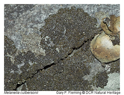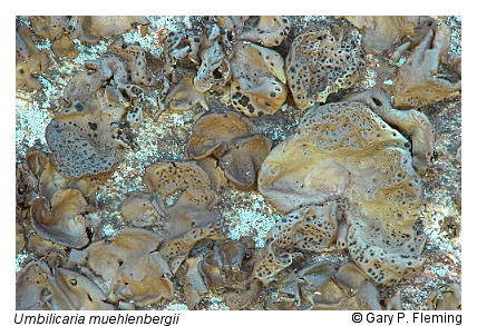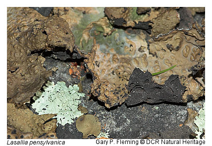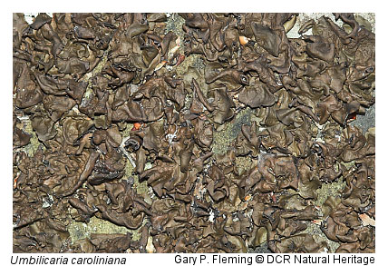 Những vách đá lớn, được che chắn, râm mát và thỉnh thoảng ẩm ướt thường là nơi sinh sống của các quần thể lớn địa y rốn Umbilicaria mammulata, một trong những loài địa y lớn nhất ở Virginia. Các loại địa y rốn khác, địa y lá chịu bóng như Flavoparmelia baltimorensis và nhiều loại địa y vỏ cứng cũng có thể xuất hiện.