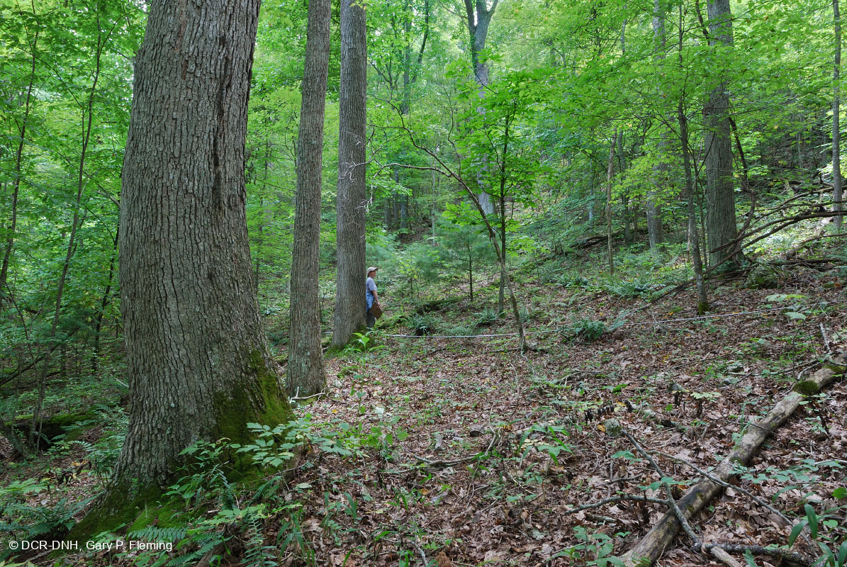 Một khu rừng sồi hickory có tính axit ấn tượng, lâu đời và khá phong phú trên một sườn núi đá siêu âm dọc theo sông New, bên dưới Round Top và phía đông nam của Buck Dam, Hạt Carroll. Khu giải trí quốc gia Mount Rogers, George Washington & Rừng quốc gia Jefferson. © DCR-DNH, Gary P.Fleming