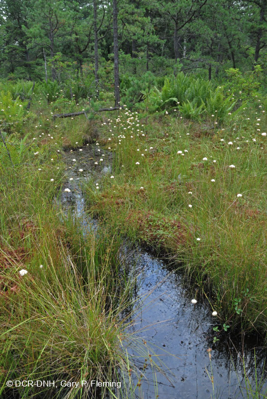 Dòng nước rò rỉ qua than bùn ở đầm lầy North Fork Stony Creek, trong thung lũng giữa Núi Peters và Núi Fork, Quận Giles. Khu bảo tồn Eastern Divide, Rừng quốc gia George Washington và Jefferson. © DCR-DNH, Gary P. Fleming