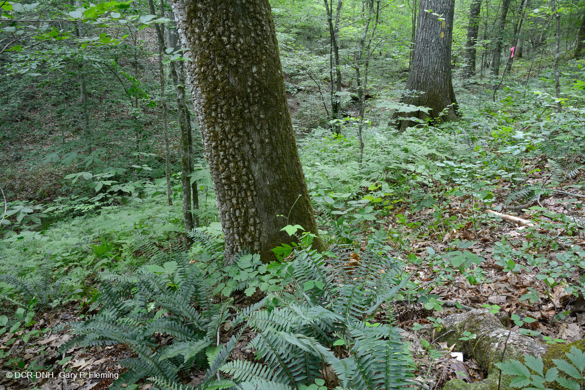 Thảm thực vật thân thảo đa dạng trong một khu rừng mesic cơ bản trên các vũng ven dọc theo Little Byrd Creek ở trung tâm Virginia Piedmont (Quận Goochland). Khu Quản lý Động vật Hoang dã Bang Goochland Marsh. © DCR-DNH, Gary P.Fleming