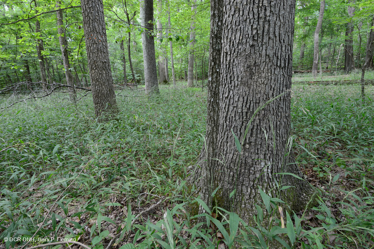 Shorthusk có râu (Brachyelytrum erectum) là một trong những loại cỏ chiếm ưu thế trong Rừng Bắc Hardpan Basic Oak - Hickory tại Khu bảo tồn Khu tự nhiên Bang Elklick Woodlands ở phía tây Quận Fairfax. © DCR-DNH, Gary P.Fleming