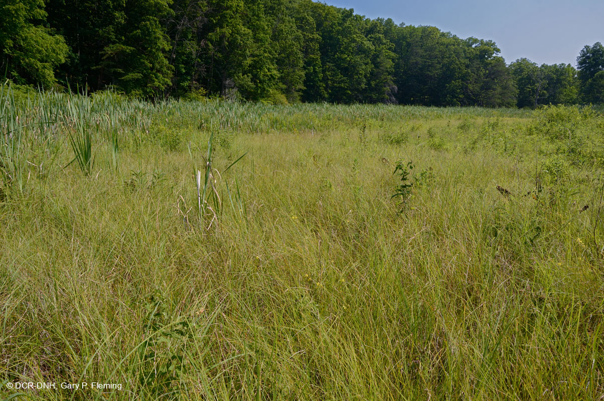 Cảnh tượng giữa mùa hè của vùng đầm lầy thảo nguyên được thể hiện trong bức ảnh trước, với sự phát triển trưởng thành của các loài cói (Carex spp.). Khu bảo tồn thiên nhiên tiểu bang Folly Mills Fen, Quận Augusta. © DCR-DNH, Gary P. Fleming