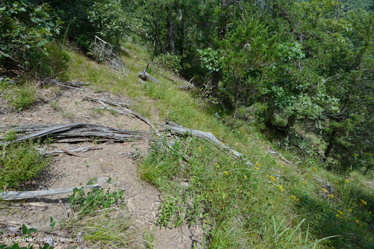 Thảm thực vật thảo mộc tương đối dày đặc và đa dạng trong vùng đất đá phiến vôi cằn cỗi nằm cạnh Sours Run, trong thung lũng giữa Núi Supin Lick và Núi Little North, Quận Rockingham. Khu vực Lee Ranger, Rừng quốc gia George Washington và Jefferson. © DCR-DNH, Gary P. Fleming