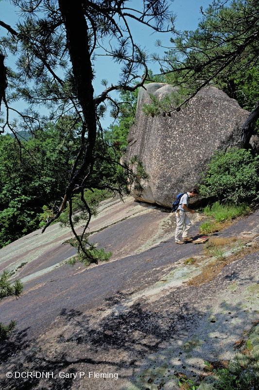 Virginia Tech botanist Thomas F. Wieboldt studying the flora of dry, acidic barrens on south flank of Point Lookout Mountain in Grayson County. © DCR-DNH, Gary P. Fleming