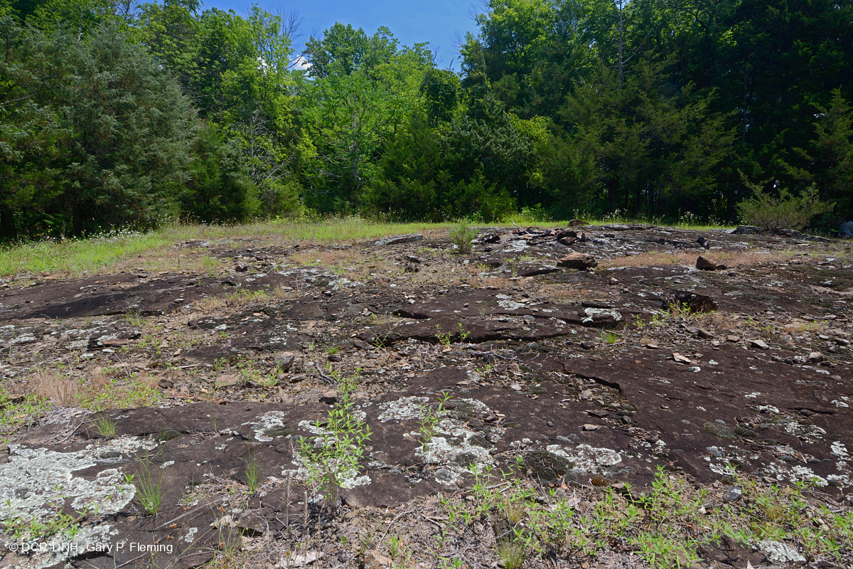 Đá phẳng Diabase trên đỉnh đồi ở phía tây Quận Fairfax. Đây là một trong những trường hợp xuất hiện ở cực bắc của loại cộng đồng. Các loài cây hàng năm như cây bìm bịp giả (Trichostema setaceum), cây cúc thông thường (Hexasepalum teres) và cây bìm bịp(Cyperus squarrosus) chiếm ưu thế trong thảm thực vật. Khu bảo tồn Sully Woodlands, Cơ quan Công viên Quận Fairfax. © DCR-DNH, Gary P.Fleming