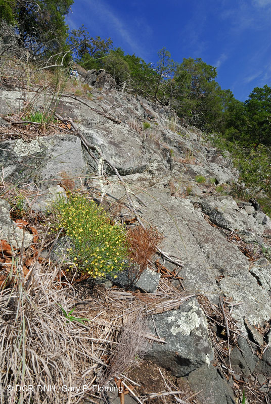 Cây thông (Hypericum gentianoides) ra hoa trong một loài amphibolite lớn và có thực vật khá thưa thớt ở sườn đông nam của Núi Sugarloaf, một chân đồi Blue Ridge ở Hạt Nelson. © DCR-DNH, Gary P.Fleming