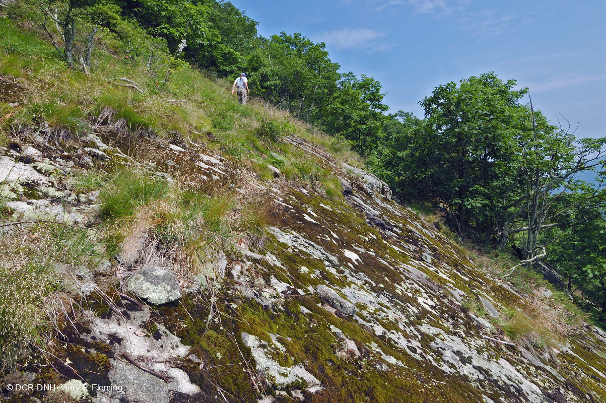 Vùng đất cằn cỗi ở sườn phía đông của Nakedtop trên Northern Blue Ridge ở Quận Page, elev. 3300 ft, Công viên Quốc gia Shenandoah. Đá nền là charnockite tẩy tế bào chết, một loại đá granit có kiềm vôi tạo thành một phần của khu phức hợp tầng hầm Blue Ridge. © DCR-DNH, Gary P.Fleming
