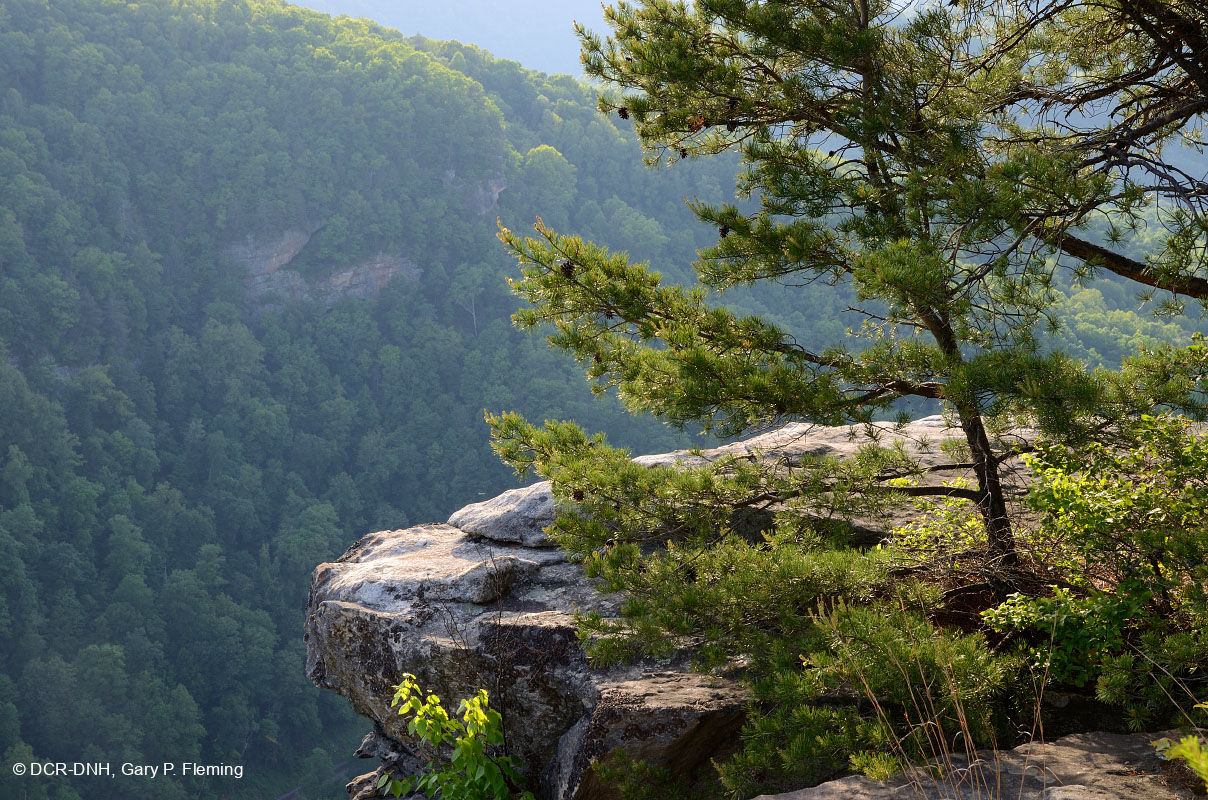 ) bám vào một vách đá sa thạch ở hẻm núi Russell Fork, Hạt Dickenson. Breaks Interstate Park. © DCR-DNH, Gary P.Fleming