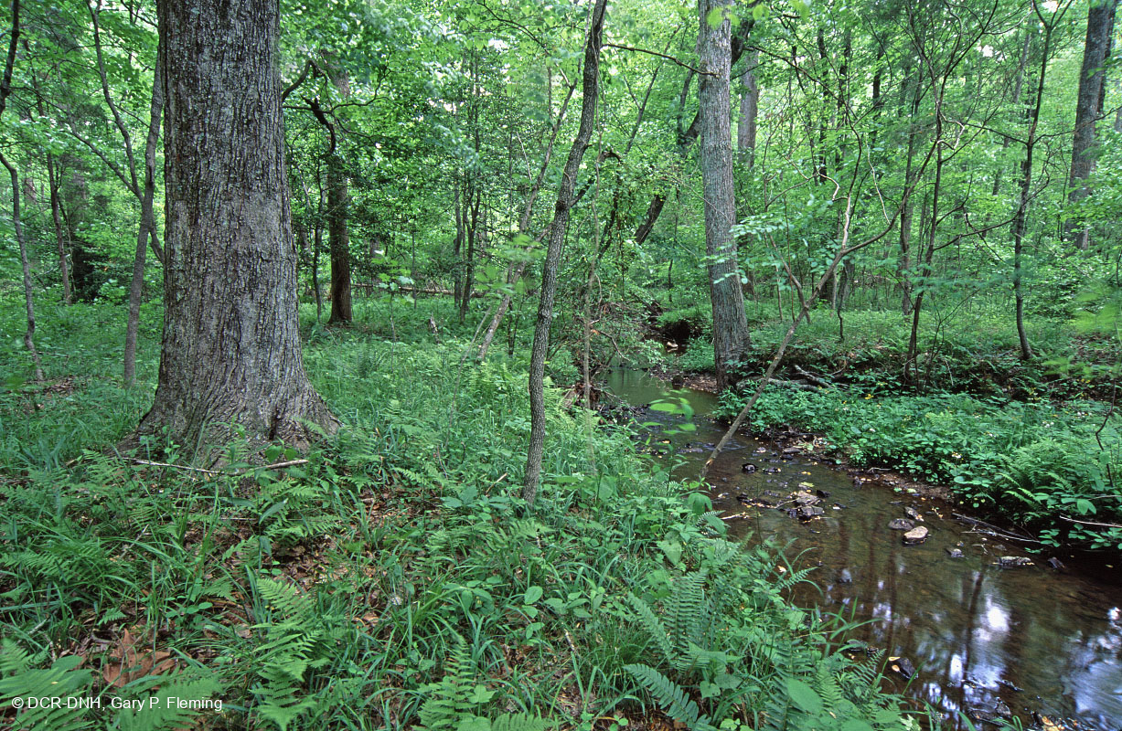Cây thảo mộc phát triển khá tươi tốt trong một khu rừng vùng ngập lũ nhỏ dọc theo North Wilderness Run ở phía đông Quận Orange. Cây phong đỏ (Acer rubrum) là cây chủ đạo trong giá đỡ. Công viên quân sự quốc gia Fredericksburg-Spotsylvania © DCR-DNH, Gary P.Fleming