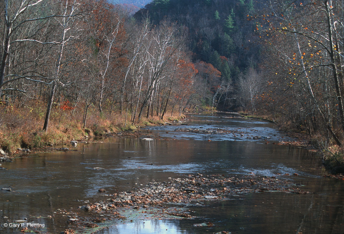 Những mảng hẹp của rừng phù sa trên núi sườn hai bên sông Cowpasture gần Williamsville, Quận Bath. Quận North River Ranger, George Washington & Rừng Quốc gia Jefferson. © Gary P.Fleming
