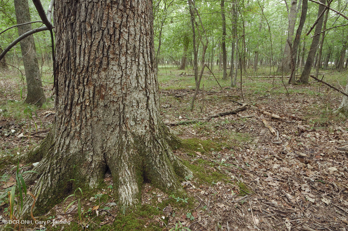 Một cây sồi trắng đầm lầy lớn (Quercus bicolor) trong một đầm lầy thấp nông, kéo xuống phía đông bắc Đồi Matthews trong Công viên Chiến trường Quốc gia Manassas, Quận Prince William. © DCR-DNH, Gary P.Fleming