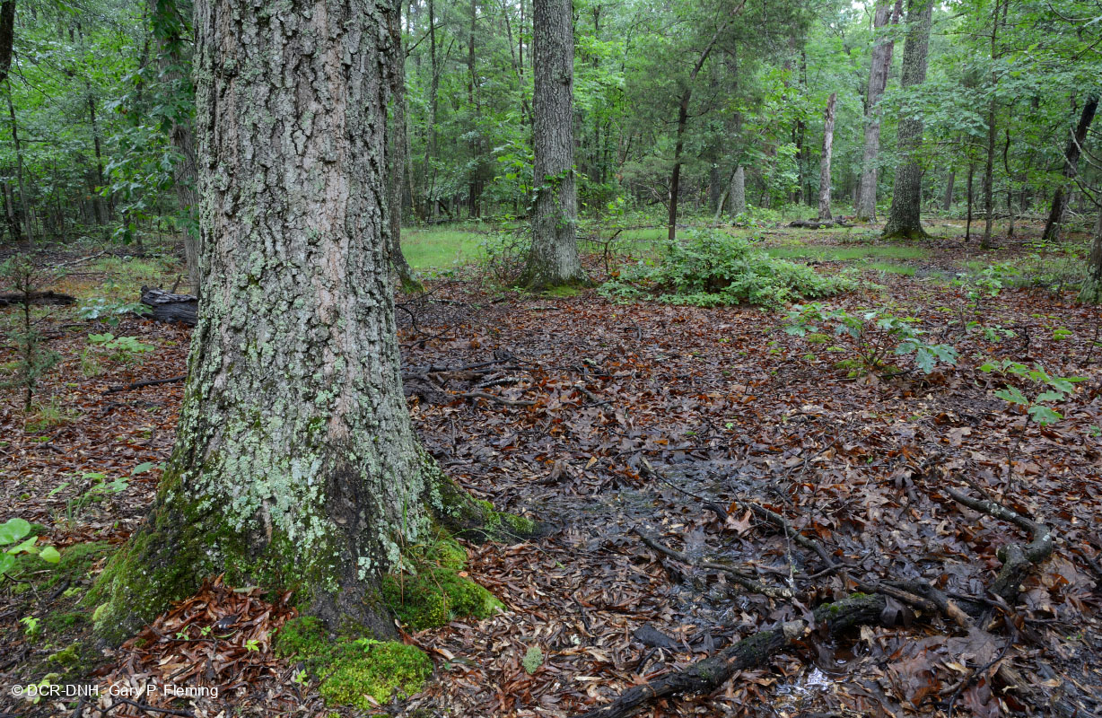 ) trong vùng trũng rừng nông trên đá phiến sét kỷ Jura sớm trong rừng phẳng ở chân phía đông của Núi Cedar ở Quận Culpeper. © DCR-DNH, Gary P. Fleming