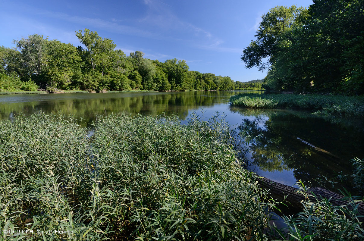 Các thuộc địa gần như đơn đặc trưng của cây liễu nước (Justicia americana) phổ biến trên các thanh đá và bờ của các con suối và sông lớn trên khắp dãy núi Virginia và Piedmont. Cây lâu năm có rễ dai này đặc biệt thích nghi tốt với các chất nền đá bị ngập lụt từ 50 đến 100% trong năm. Gian hàng này nằm trên bờ sông Shenandoah tại Cơ sở Cool Spring của Đại học Shenandoah ở Quận Clarke. © DCR-DNH, Gary P.Fleming