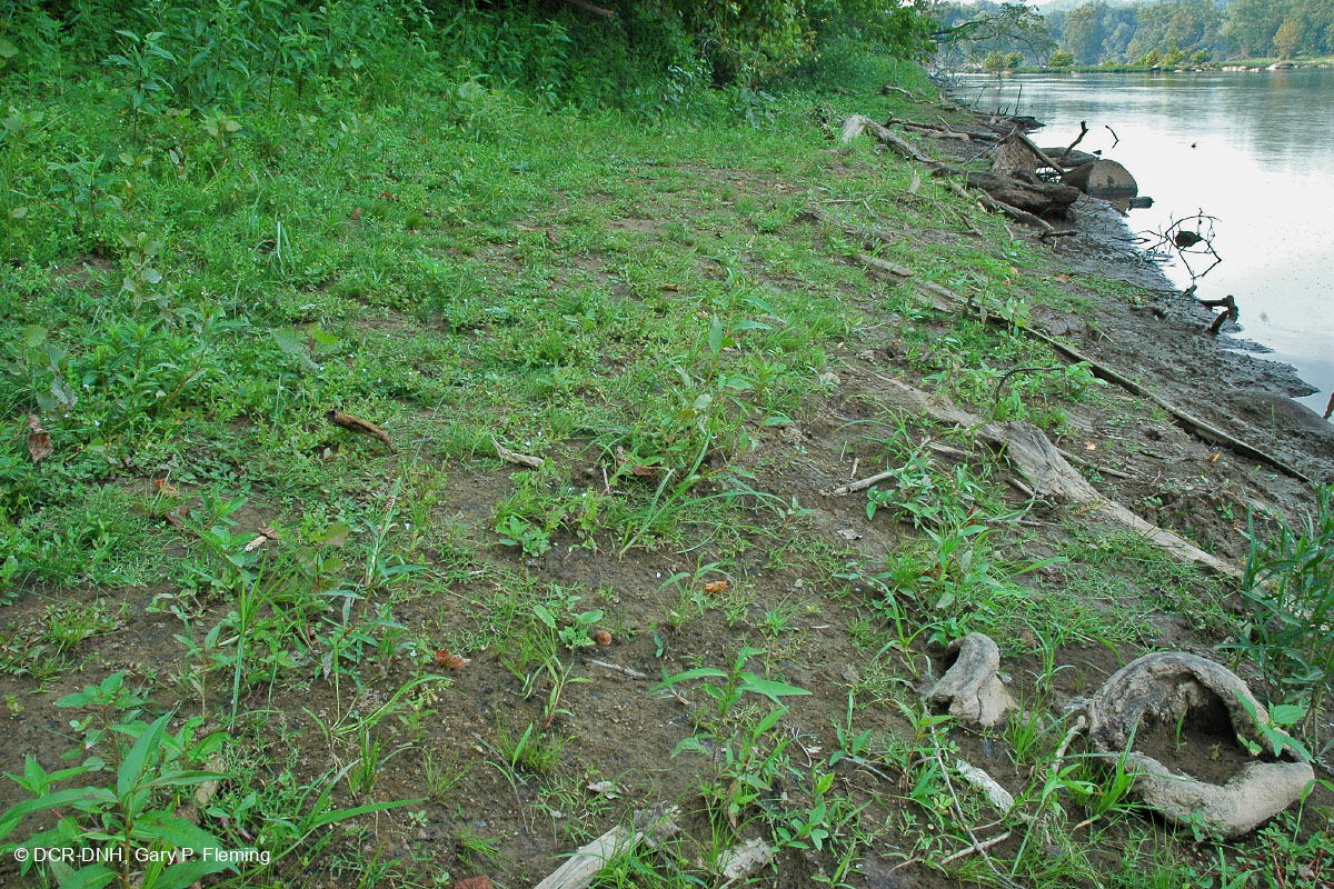Một bãi phù sa phát triển tốt dọc theo Sông Potomac, chủ yếu là các loài cây hàng năm nhỏ thích nghi tốt với môi trường sống có mực nước rút theo mùa hoặc không liên tục. Công viên Riverbend, Quận Fairfax. © DCR-DNH, Gary P. Fleming