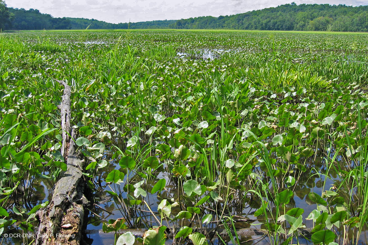 Freshwater Tidal Marsh composed primarily of common spatterdock (Nuphar advena), with some wild rice (Zizania aquatica var. aquatica), along Accokeek Creek in Stafford County (Potomac River drainage). Crows Nest State Natural Area Preserve. © DCR-DNH, Gary P. Fleming
