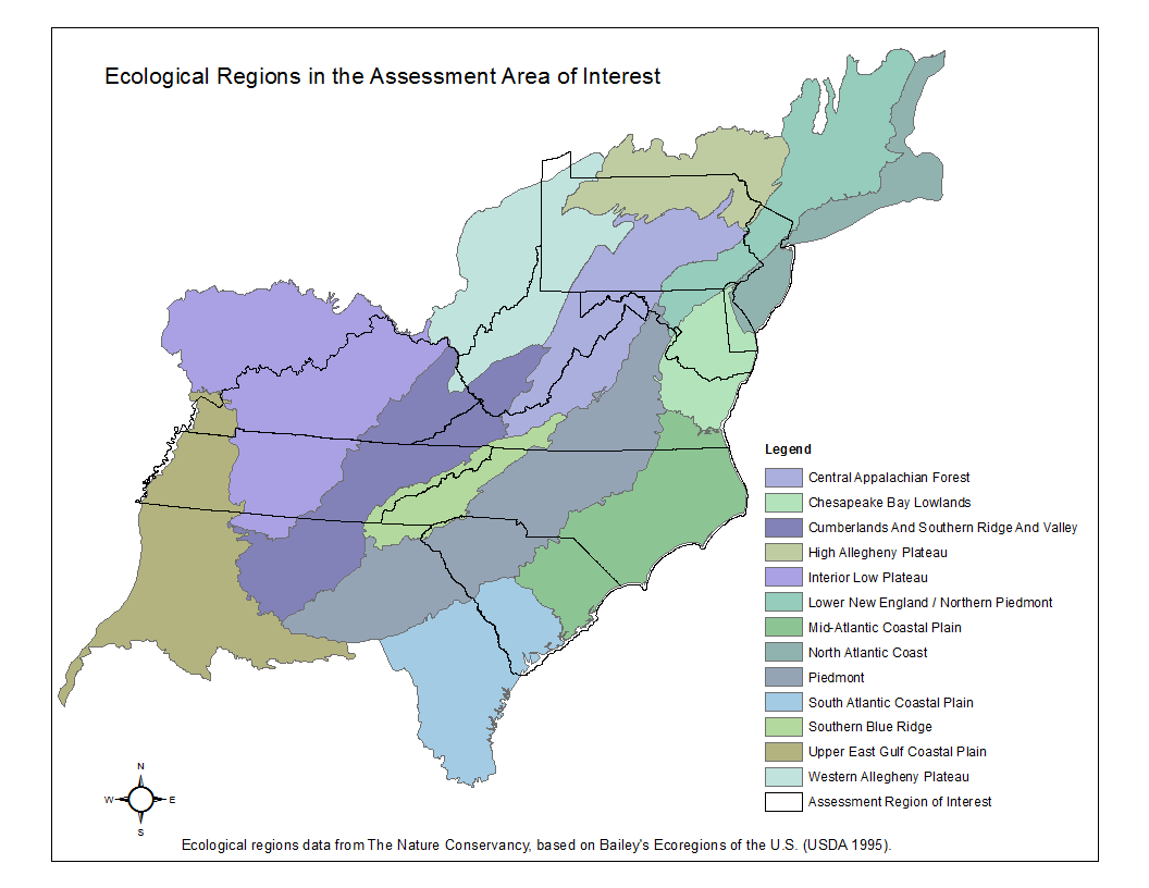 Khu vực quan tâm của đánh giá này được xác định là các tiểu bang New Jersey, Delaware, Maryland, Quận Columbia, Pennsylvania, Tây Virginia, Kentucky, Virginia, Bắc Carolina, Nam Carolina và Tennessee.