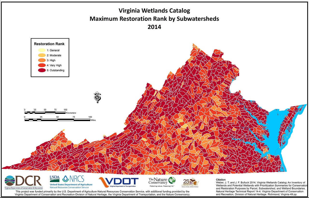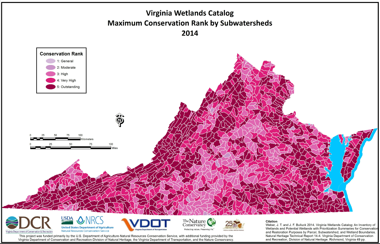 Sở Bảo Tồn và Giải Trí Danh mục đất ngập nước Virginia (VWC) là danh mục các vùng đất ngập nước và các vùng đất ngập nước tiềm năng có tóm tắt thứ tự ưu tiên cho mục đích bảo tồn và phục hồi theo từng lô đất, tiểu lưu vực và ranh giới đất ngập nước.