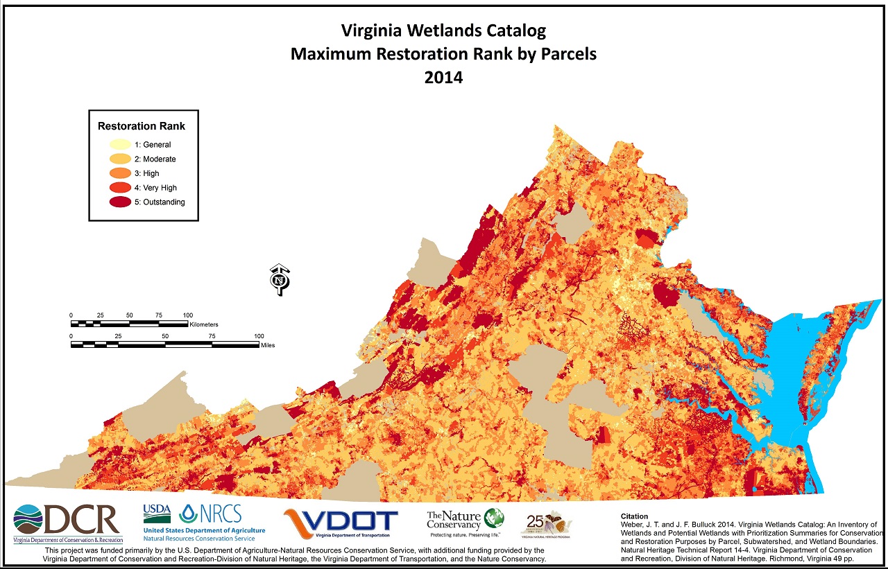 VWC có thể được sử dụng để ưu tiên các vùng đất ngập nước, lô đất và tiểu lưu vực cho mục đích bảo tồn hoặc phục hồi, để cung cấp thông tin cho các quy trình thiết kế dự án nhằm giúp chúng hiệu quả hơn, để đánh giá tác động của các dự án được đề xuất và xác định các địa điểm giảm thiểu có thể. Nhà tài trợ chính của VWC, Bộ Nông nghiệp Hoa Kỳ - Cơ quan Bảo tồn Tài nguyên Thiên nhiên (NRCS), Văn phòng Tiểu bang Virginia, sử dụng danh mục này để xếp hạng các vùng đất ngập nước theo các giá trị liên quan đến môi trường sống của động vật hoang dã và chất lượng nước và để bảo tồn các vùng đất ngập nước theo chương trình Quyền bảo tồn đất ngập nước (WRE).