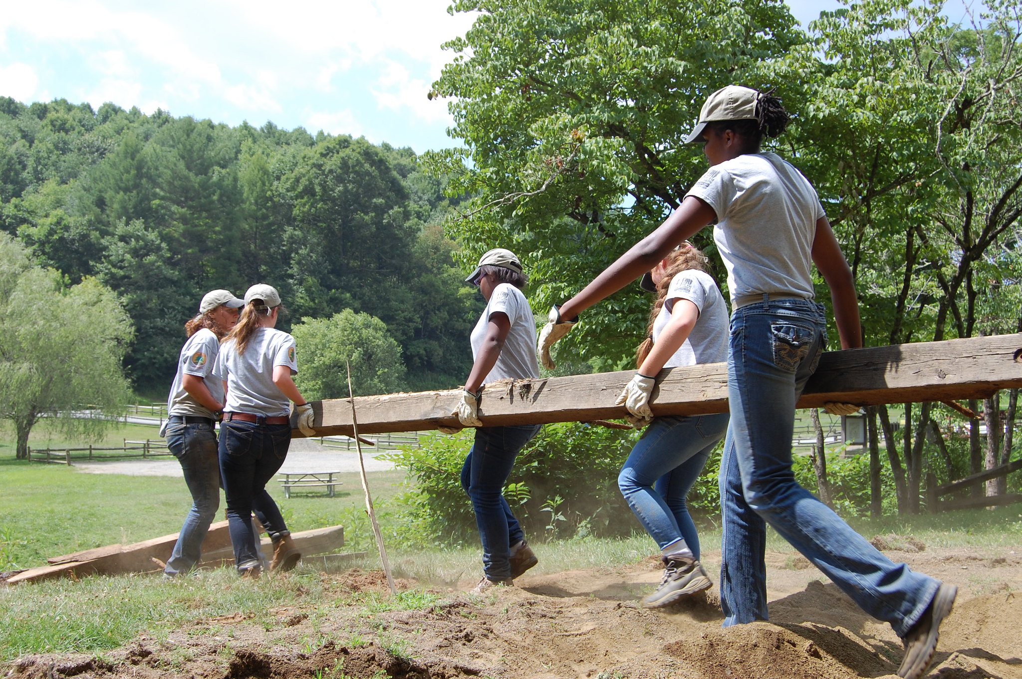(Biên tập viên: Nhấp vào liên kết này để tải xuống hình ảnh. Chú thích ảnh: Đội ngũ YCC đang làm việc chăm chỉ để gia cố đường mòn tại Công viên Tiểu bang Đường mòn New River)