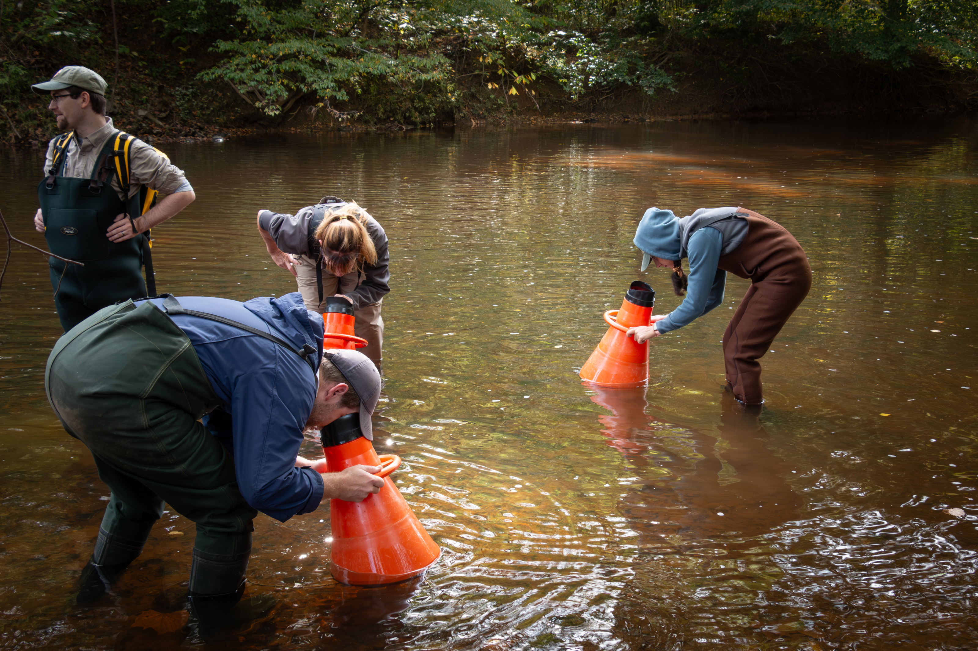 (Biên tập viên: Nhấp vào liên kết này để tải xuống hình ảnh. Chú thích ảnh: Nhân viên của Sở Bảo tồn và Giải trí Virginia, Sở Tài nguyên Động vật hoang dã Virginia và Quỹ Vịnh Chesapeake tiến hành khảo sát trai nước ngọt ở Sông Nam Anna thuộc Quận Hanover. Ảnh của Bộ Bảo tồn và Giải trí.)