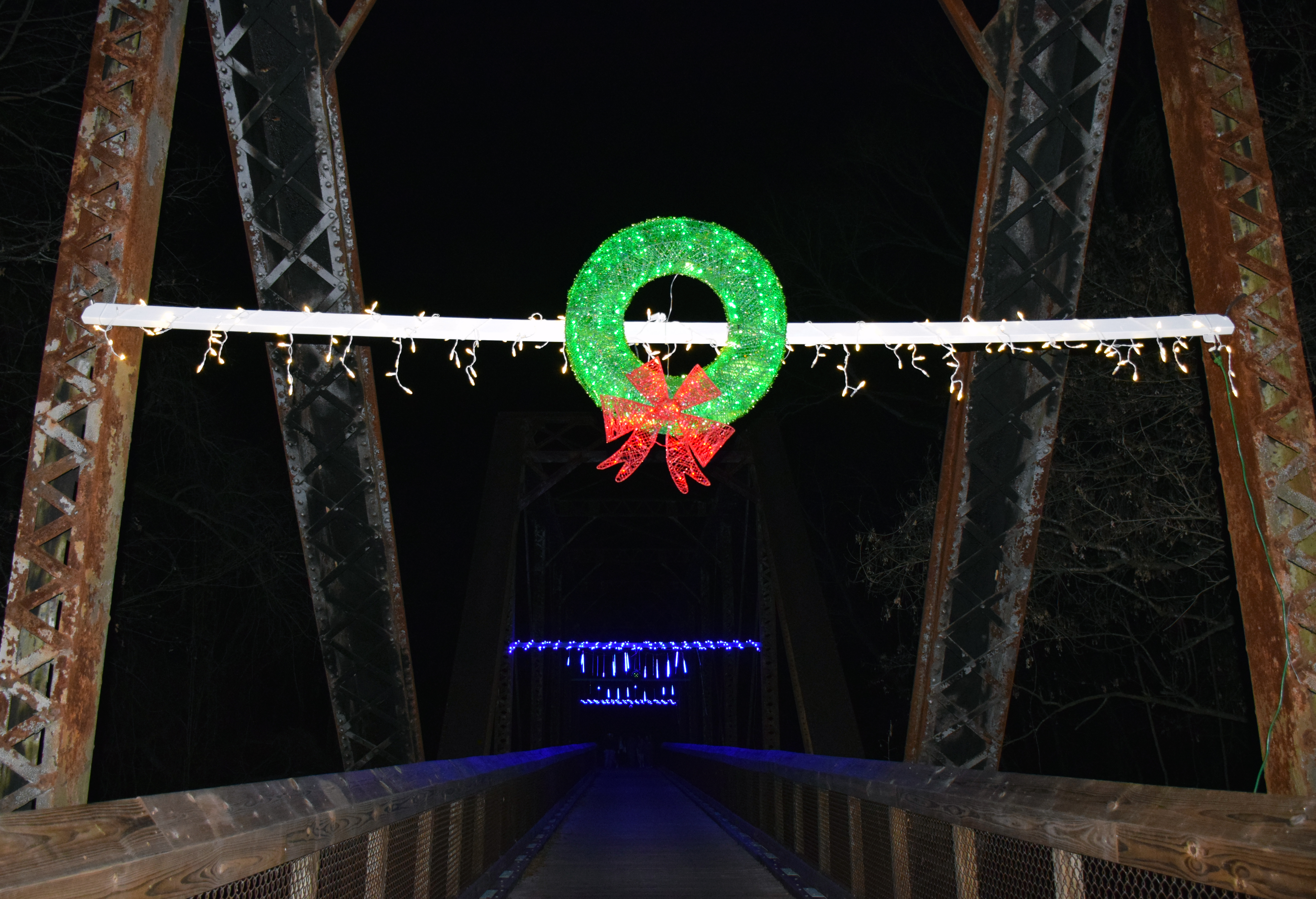 (Biên tập viên: Nhấp vào liên kết này để tải xuống hình ảnh. Chú thích ảnh: Cầu sông Staunton với đèn trang trí ngày lễ)