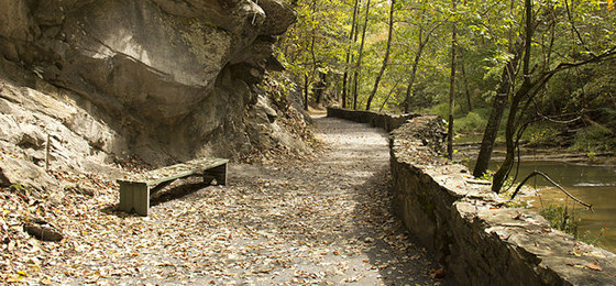 Hơn 10 dặm đường mòn đi bộ quanh co qua hẻm núi, đồng cỏ và rừng của công viên. Đường mòn Cedar Creek chạy dưới Cầu Tự nhiên đến Hang Saltpeter, Sông Lost và Thác Lace. Đường mòn Buck Hill mang đến một chuyến đi bộ đường dài khá giống với đường mòn Appalachian. Đường mòn Blue Ridge và đường mòn Skyline mang đến tầm nhìn ngoạn mục ra dãy núi Blue Ridge và dãy núi Appalachian. Chuẩn bị bữa trưa để mang theo và thưởng ngoạn nhiều cảnh đẹp.