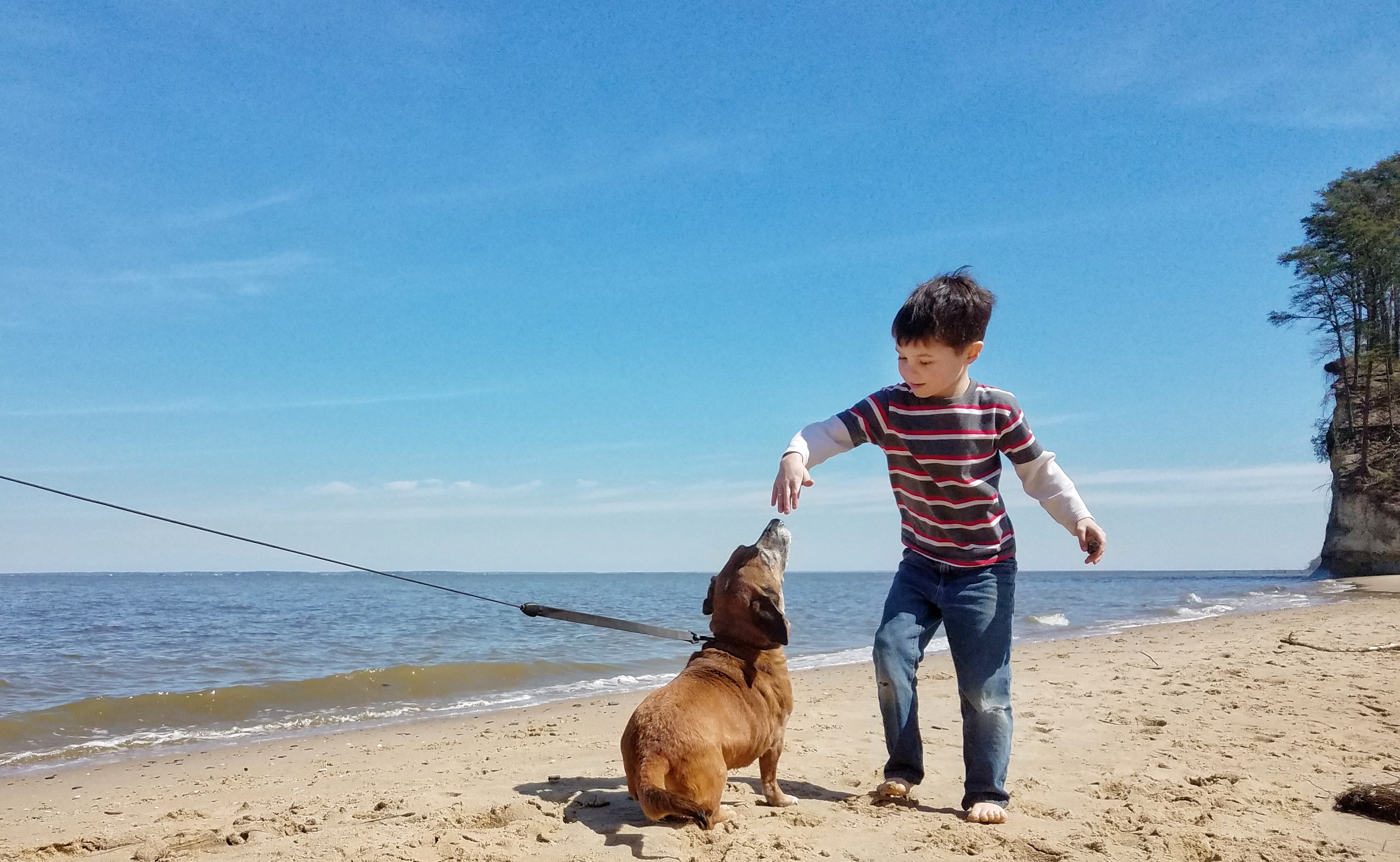 (Biên tập viên: Nhấp vào liên kết này để tải xuống hình ảnh. Chú thích ảnh: Chó được xích cùng cậu bé tại Công viên tiểu bang Westmoreland)