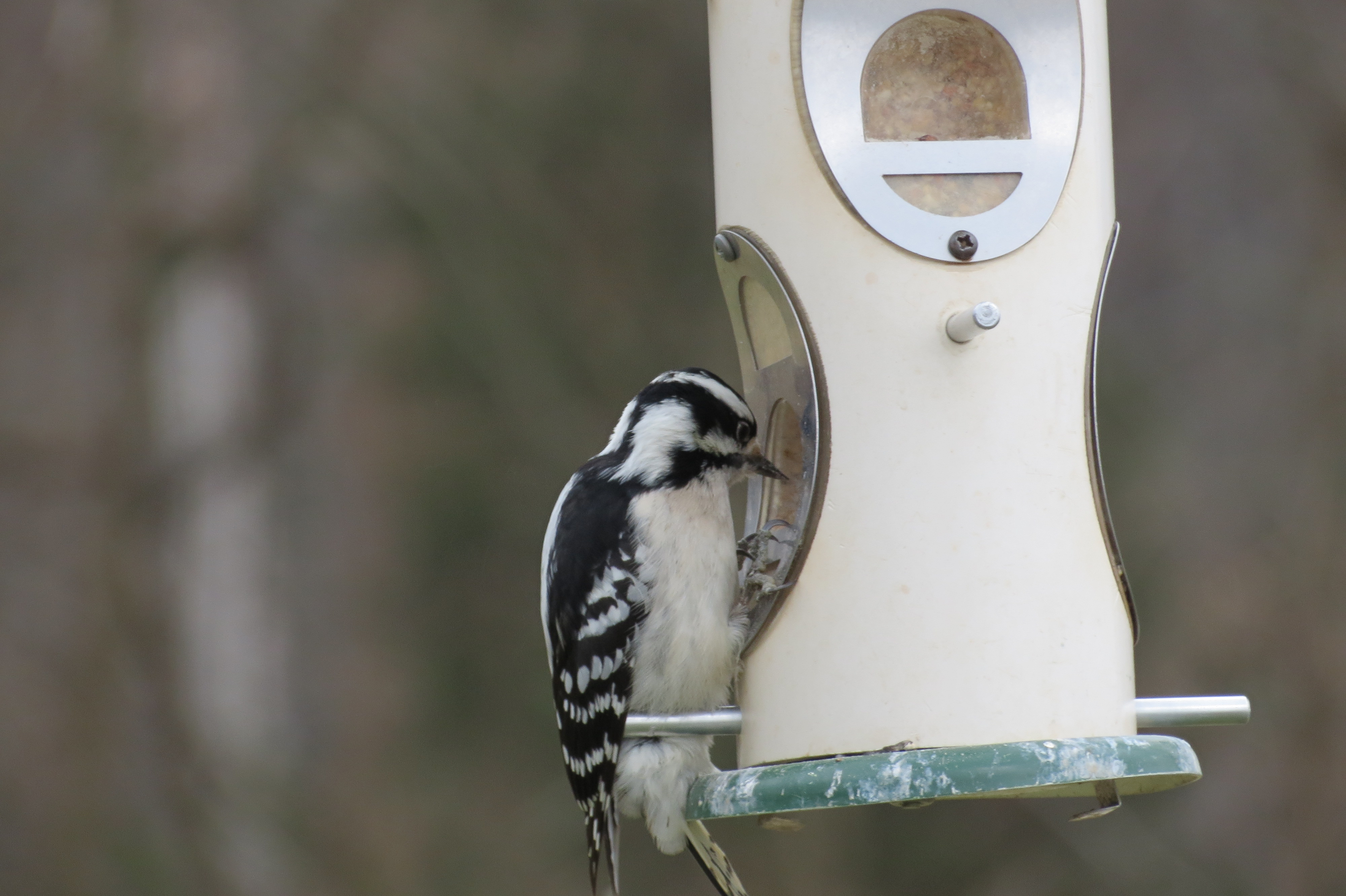 (Biên tập viên: Nhấp vào liên kết này để tải xuống hình ảnh. Chú thích ảnh: Chim gõ kiến lông tơ tại máng ăn)