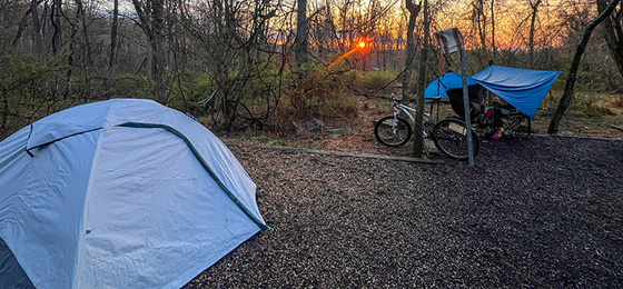 Người cắm trại phải để tất cả các thiết bị trên bãi cắm trại của khu cắm trại. Nhận phòng, 4 chiều; trả phòng, 1 chiều